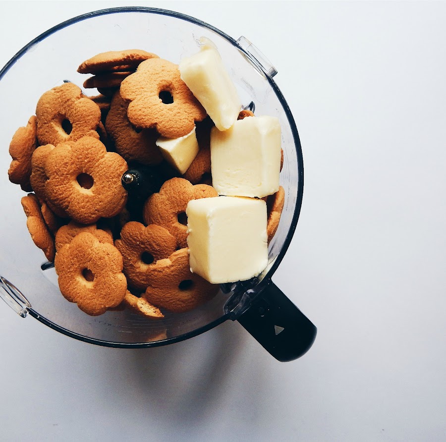 La base la vamos a hacer de galletas molidas y mantequilla.