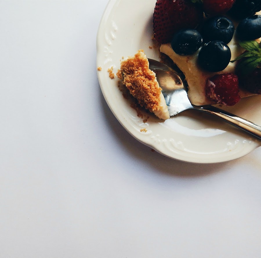 Pasado el tiempo de reposo de nuestra tarta, adornamos con los frutos rojos.