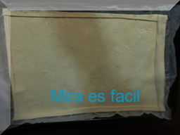 Ponemos la base de hojaldre sobre el papel de horno.