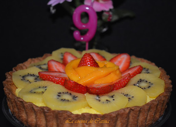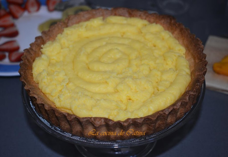 Extendemos la crema pastelera sobre la base de la pasta brisa y vamos decorando al gusto con las frutas frescas seleccionadas.