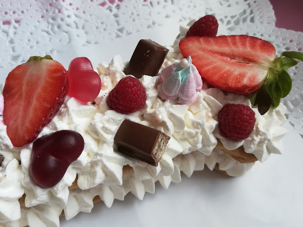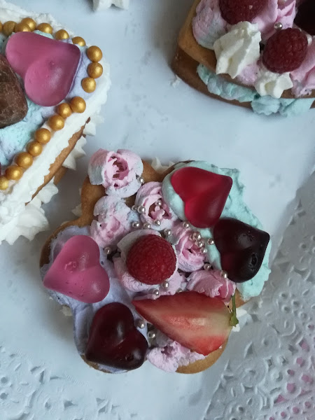 Nosotras hemos utilizado la receta de nuestras galletas de vainilla (que ya la tenéis disponible en otra de las entradas anteriores) y el relleno que hemos elegido ha sido un frosting de queso. Por último, para la decoración hemos escogido frutas (fresas y arándanos), gominolas, chocolatinas, bolitas, y unas rosas hechas con boquillas rusas, que quedan chulísimas!!! Aunque al principio se nos resistían y hemos hecho alguna pruebecilla que otra, jejeje...