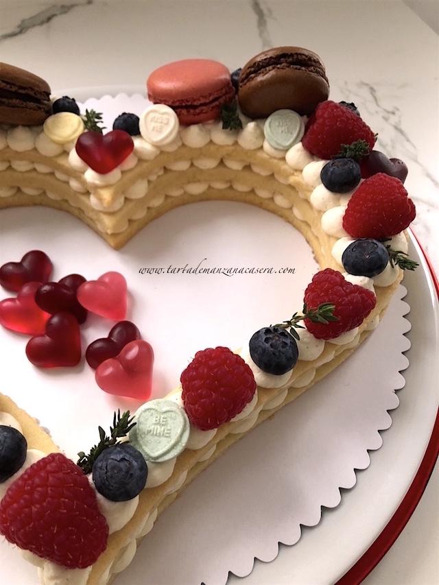Yo he optado por adornarla con frambuesas, macarons, arándanos y caramelos Giant Love Hearts con mensaje de Taste of America.