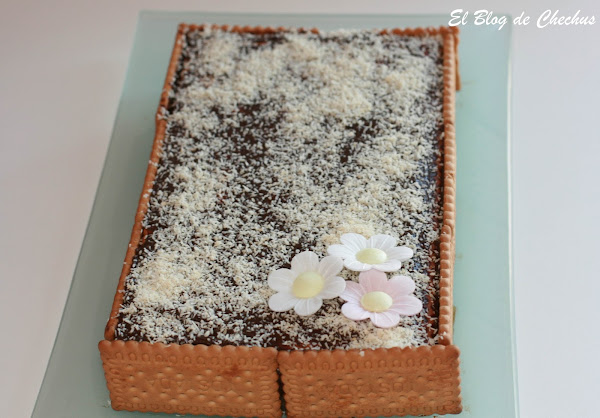 Esta entrada se la dedico a mi abuela, la mejor haciendo la típica tarta de galleta y moka, que a todos nos vuelve locos en la familia. Yo, con eso de innovar, he hecho mi propia versión, pero acoplándola a mis hijas, con chocolate a tope. Os cuento...