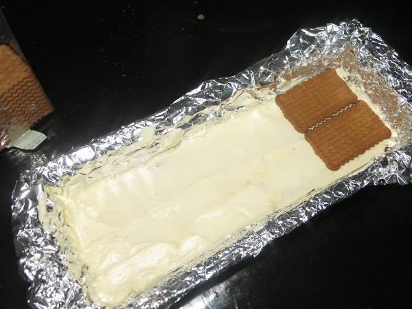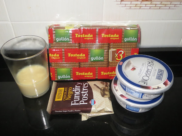 Cogemos un molde rectangular y lo forramos con papel albal, en el fondo colocamos una capa de galletas que habremos mojado en café, luego ponemos otra capa con el queso mascarpone batido con la leche condensada, podéis hacer la capa más o menos gruesa a vuestro gusto.