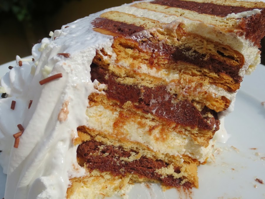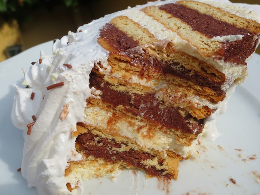 Extendéis crema y pegáis, así sucesivamente hasta que terminemos con las cremas,