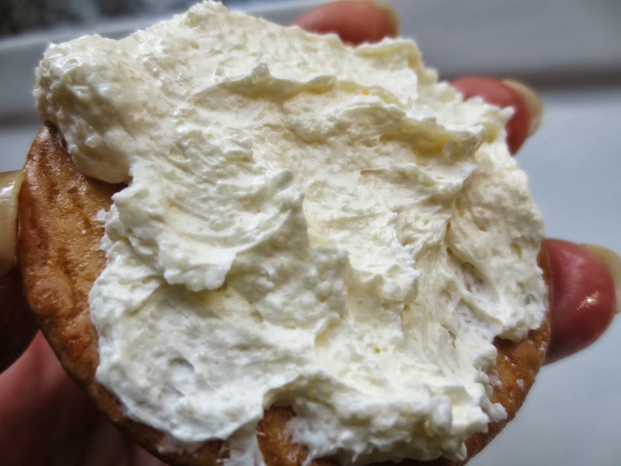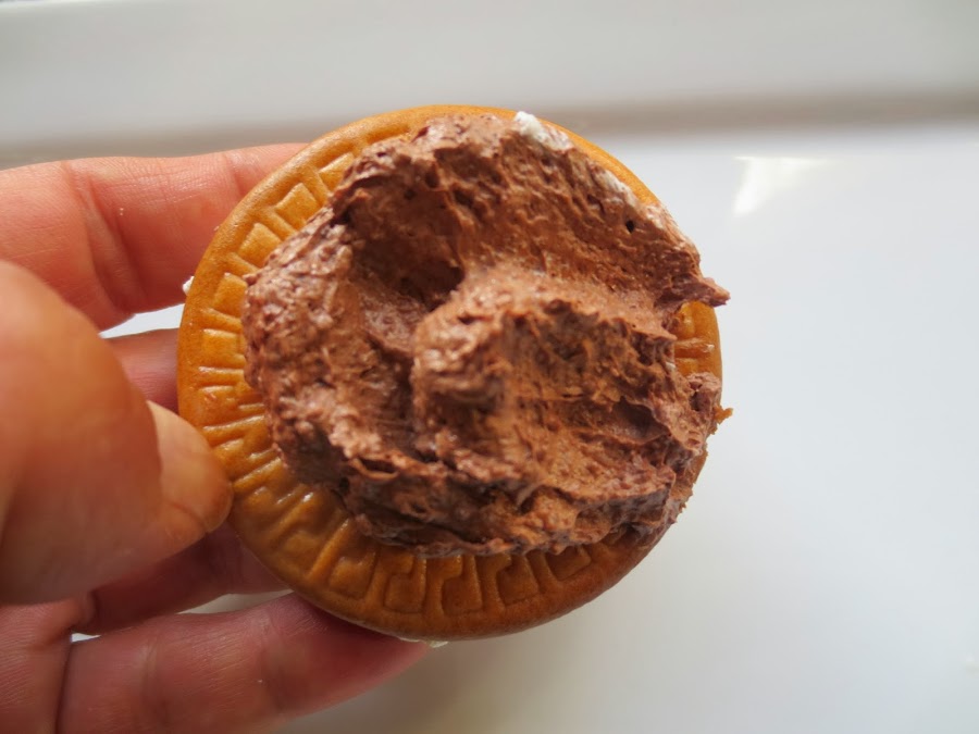 Vamos extendiendo una poca de crema en cada galletina remojada