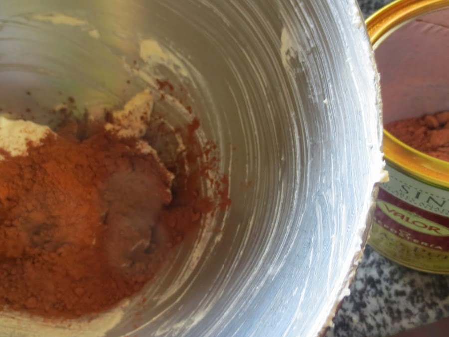 3- Separar la mitad de la crema, añadir el cacao y mezclar unos segundos en velocidad progresiva 4.