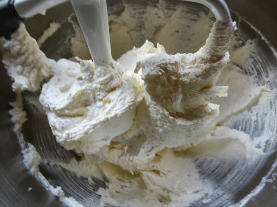 2- Sin lavar el bol, colocar la pala mezcladora, mantequilla, azúcar glas (200gr.), yemas y vainilla, batir unos 4 minutos en velocidad progresiva 4, hasta que blanquee y creme bien.