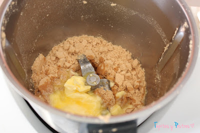 Agregamos la mantequilla a temperatura ambiente. Mezclamos 15 segundos a velocidad 3. Ponemos la masa de galletas en el fondo de un molde desmoldable y reservamos en la nevera media hora.