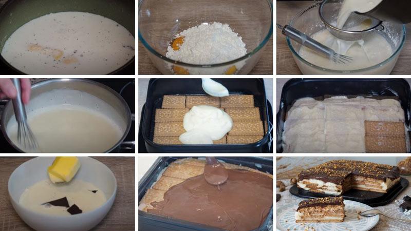Paso a paso para hacer la Tarta de Galletas con Crema Casera o Tarta de la abuela tradicional: