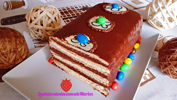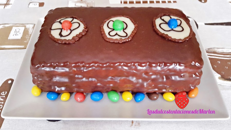 Esta es una tarta tradicional, sin horno, que yo he hecho a mi manera. Muy fácil de preparar , y que queda riquísima. Como postre, merienda, o para darnos un capricho...que también nos lo merecemos!!