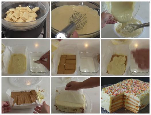 Tarta de galletas y chocolate blanco