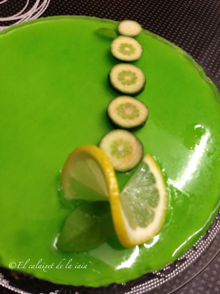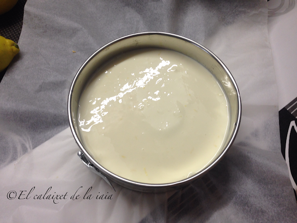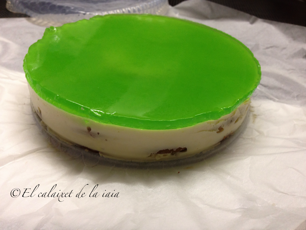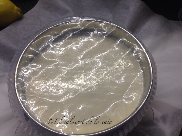 volcamos sobre la tarta, la tapamos y volvemos a introducirla en el frigo, hasta que cuaje la gelatina.