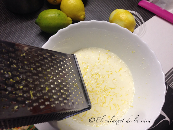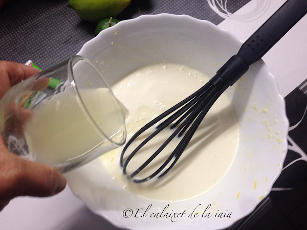 A medida que batimos, veremos como la crema se va espesando al contacto de los lácteos con los cítricos, una vez espese, reservaremos