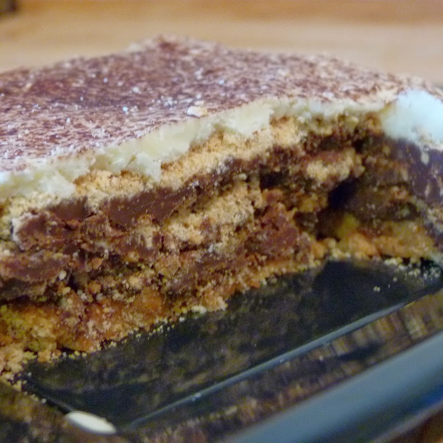 A continuación, ponemos en un molde una base de las gallegas machacadas, las untamos con un poco de leche y echamos un poco del chocolate negro derretido. Repetimos este proceso las veces que queramos en proporción al grosor que deseemos obtener, finalizando siempre con una capa de galletas.