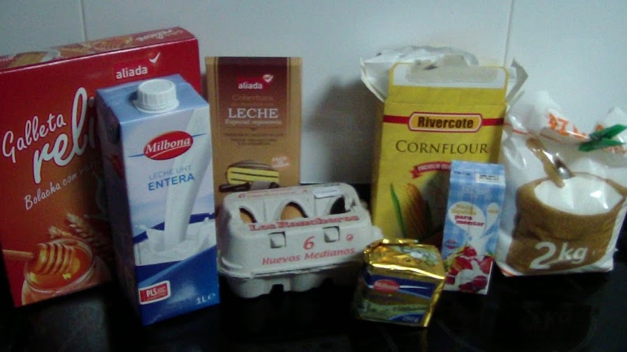 Metemos el chocolate al microondas con la nata (crema de leche) y la mantequilla, el chocolate puede ser el que más os guste, en este caso he empleado chocolate con leche fondant. Una vez que tenemos derretido el chocolate, lo echamos por encima de las capas de galletas y la metemos a la nevera hasta el día siguiente.