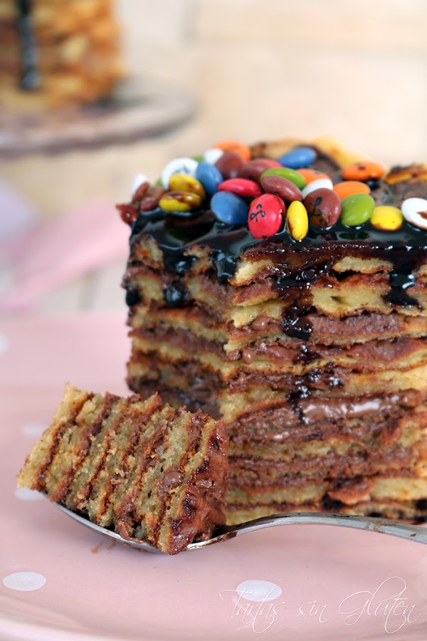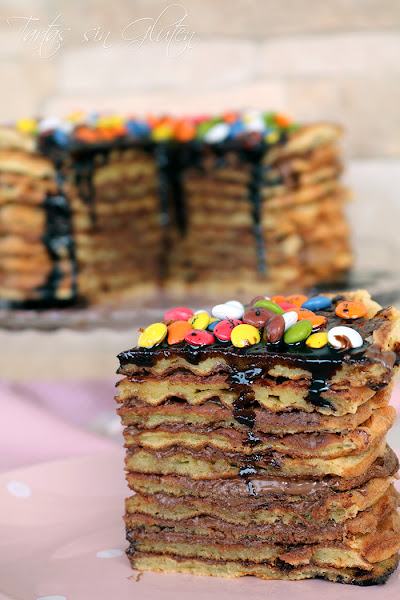 Es una tarta que no necesita horneado y tan solo esta elaborada con gofres y crema de cacao.