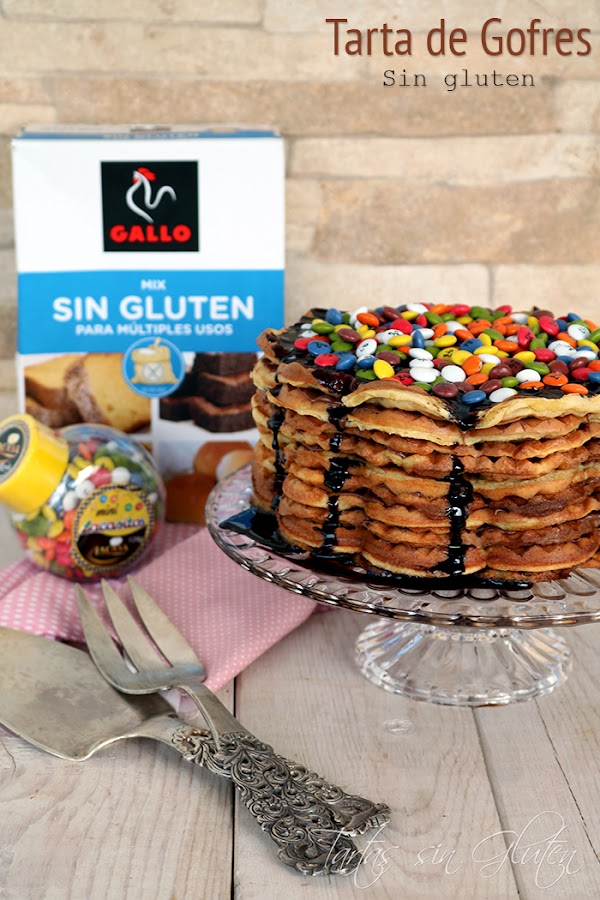 Estos gofres esta hecho en la gofreras, como sabéis hay dos modelos el tipico de los gofres con cuadraditos y esta otra que hace gofres finitos tipo obleas. Bueno pues esta ultima es la que he usado, más abajo os dejo una fotito. Los ingredientes para la masa de los gofres, son bastantes básicos, yo de nuevo he usado la harina Gallo sin gluten, va estupenda para postres y panes. además hemos aprovechado la promoción de este mes y hemos decorado con deliciosos Lacasitos minis.