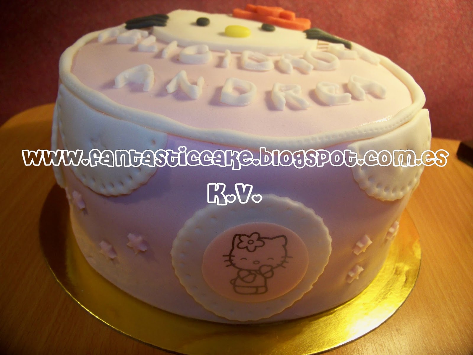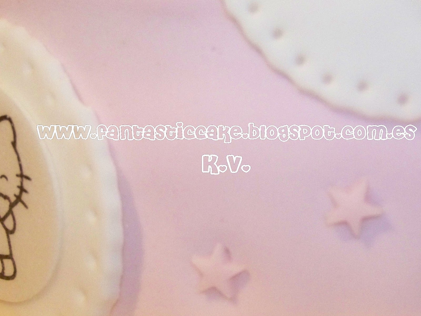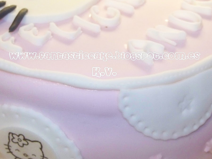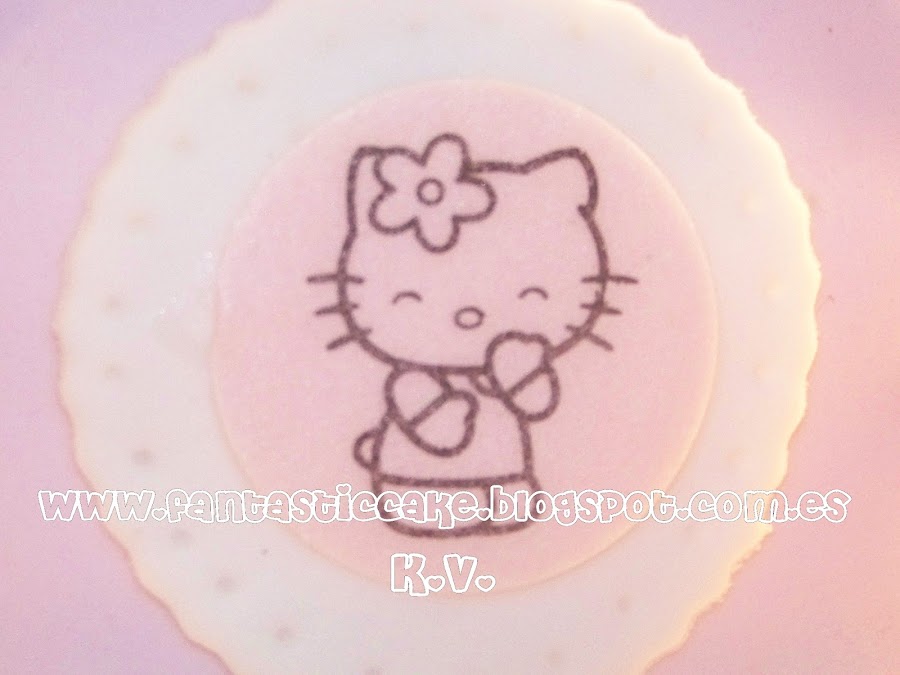 Este fue el resultado, una tarta en rosa con una cara de Hello Kitty.