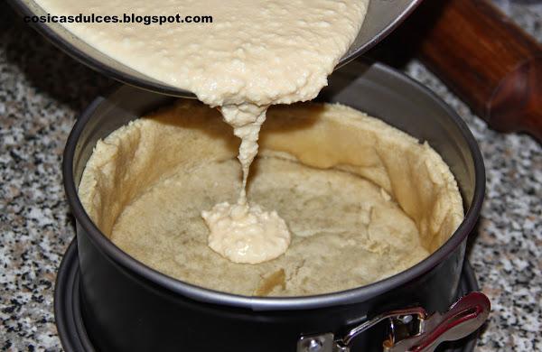 Vertemos la mezcla sobre la base y horneamos a 190º unos 30 minutos más.