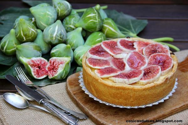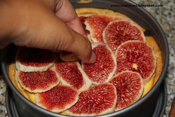 Las personas que me conocen saben muy bien cuales son los regalos que realmente me hacen feliz. Imagino que conocen mi "vida fantaseada"; esa en la que mi casa está en medio de un campo con gallinas ponedoras y conejos; con huerto propio y árboles frutales y en la que yo, como una alegre granjerita, recojo, cesto en mano, todo lo que la tierra produce para mi. Nunca me veo limpiando los gallineros, ni regando a pleno sol pero ¿qué queréis que os diga? Es mi sueño y como en todos los sueños sólo me quedo con lo bueno. El caso es que pese a que no puedo presumir de la casita en el campo con huerto incluido, si puedo hacerlo de tener muy buenos amigos. De los que un día tocan el timbre y te sorprenden con unos de esos presentes que te colocan la sonrisa en la cara. Para mi no hay mejor regalo que unos huevos recién puestos, unos espárragos recién cortados, unos conejos con los que preparar un rico arroz o, ahora que es tiempo de ellos, unos higos recién cogidos del árbol tan dulces y deliciosos como los que hace unas semanas me trajo a casa mi amigo José Antonio. Con ellos y con una receta de La Repostería de Miguel, un blog mágnifico que recomiendo a todos, preparé esta tarta. Espero que os guste.