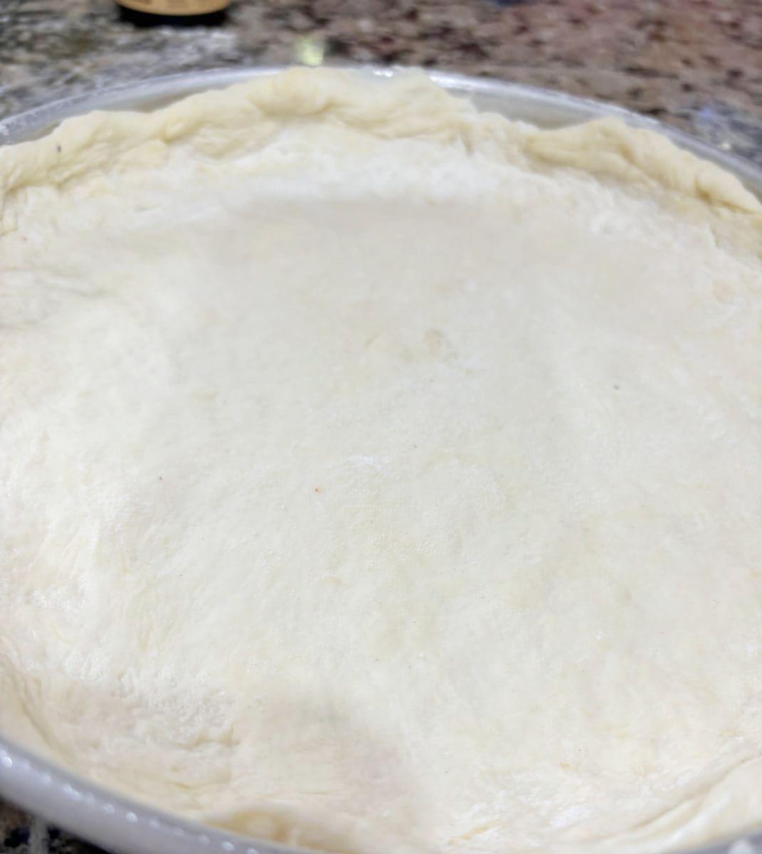 4- Estirar la masa (dejando un poco para hacer las tiras) , y cubrir la tartera.