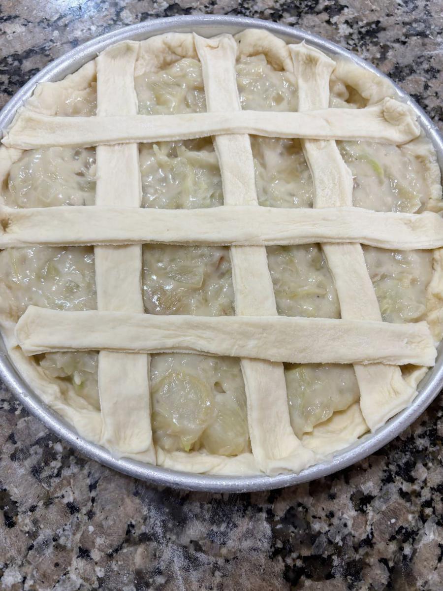 5- Agregar el relleno y cubrir con tiras de masa