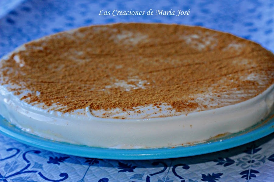 Cuando le hayamos dado la vuelta le quitamos el papel y espolvoreamos canela. Volvemos a meter nuestra tarta en el frigorífico hasta la hora de comerla.