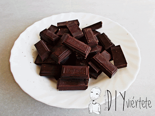 Para derretir el chocolate, hazlo a trozos en un plato e introdúcelo en el microondas en modo descongelar.