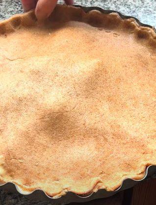 4-Estirar en forma redonda y cubrir la tartera enmantecada