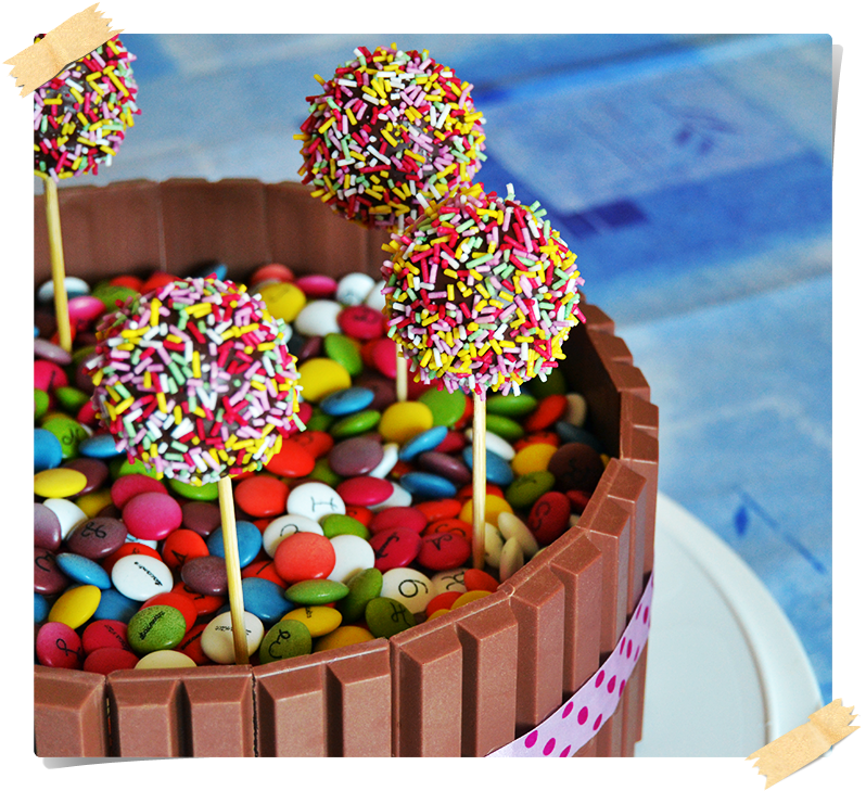 Hoy os traigo una tarta que solo de mirarla dan ganas de comérsela! Su base es una tarta de Huesitos con abundante Nutella, y como broche final va recubierta con barritas de Kit Kat y una piscina de Lacasitos. También se puede adornar con unos Cake Pops de Chocolate como he hecho yo, pero eso es según lo golos@s que lleguéis a ser! Así que os lo dejo a vuestra elección! ;P