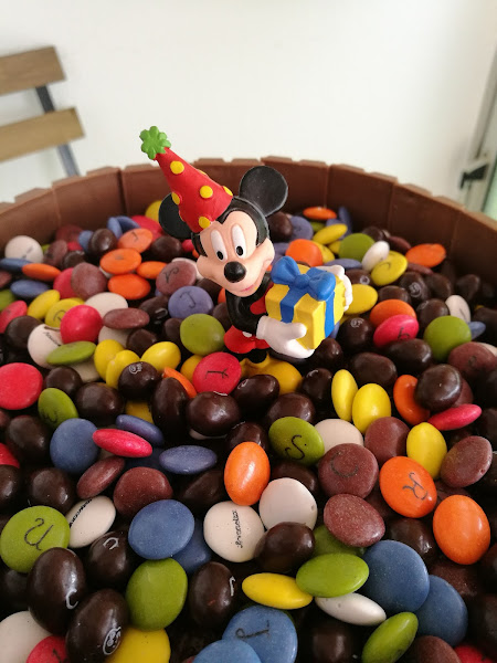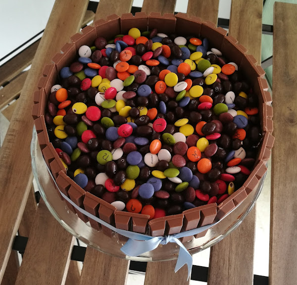 Para decorar utilicé Kit Kat, lacasitos, conguitos y nutella.