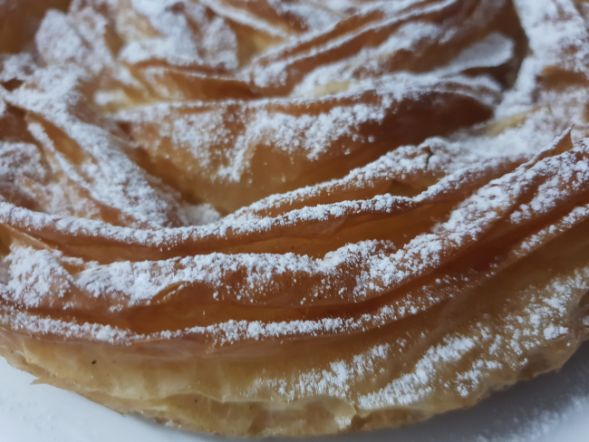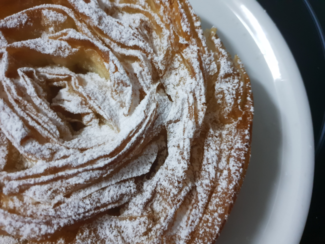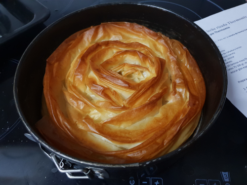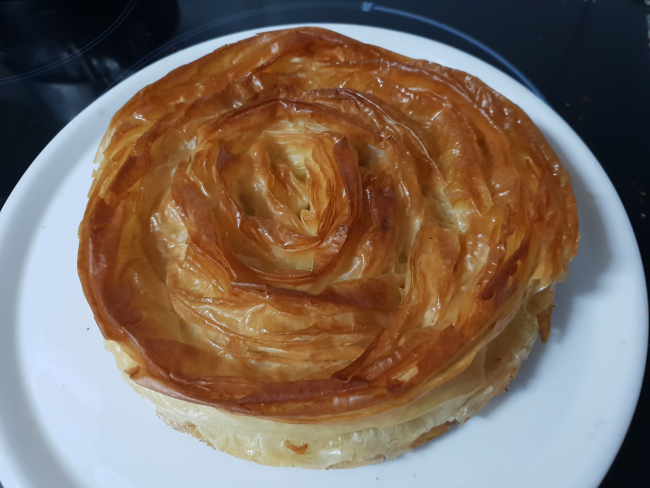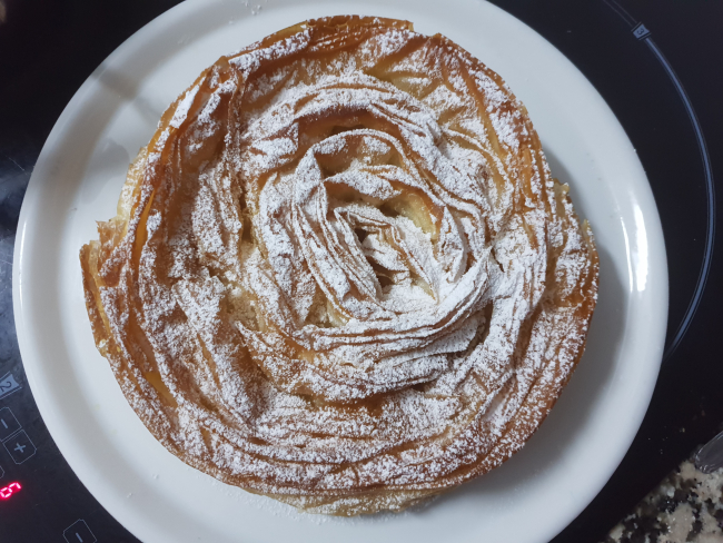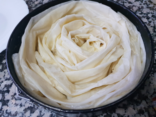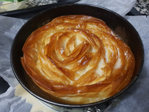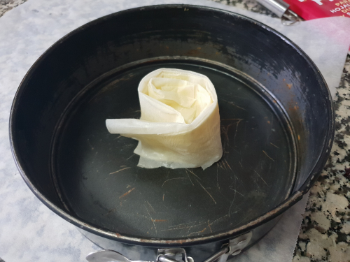 Observaciones: Hay que hacerlo el mismo día que vayas a comerlo porque si no lo haces así la pasta filo deja de estar crujiente y es la gracia del pastel.