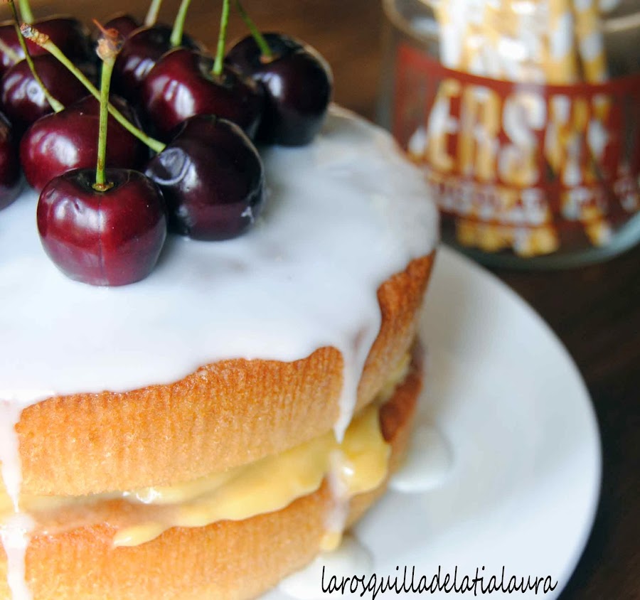 Para montar, ponemos lemoncurd entre los dos bizcochos y bañamos con la glasa. Encima ponemos el fruto que queramos.