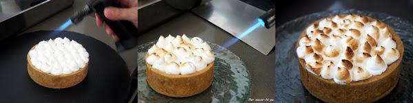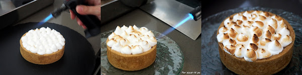 El acabado tostado del merengue se lo vamos a dar con un soplete de cocina. No hay que acercar la llama al merengue, es mejor trabajar desde una cierta distancia. Se quema con facilidad y rapidez, así que si es la primera vez os aconsejamos que hagáis una prueba primero para calibrar las distancias y el acabado que más os guste.