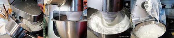 Con las cantidades indicadas se obtiene más merengue del necesario para la tarta, o sea que podéis preveer otra preparación o hacer más tartas. También se pueden reducir las cantidades, pero en ese caso se trabaja peor.
