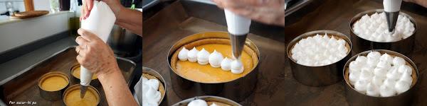 Con estas cantidades hemos elaborado 2 tartas de 10 centímetros de diámetro y una de 12 centímetros, el volumen de crema para una tarta única equivale a una de 18 centímetros de diámetro. Como explicamos más abajo os sobrará merengue italiano.