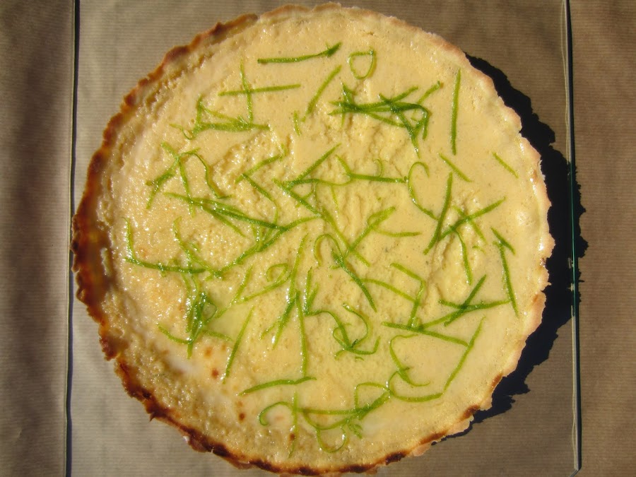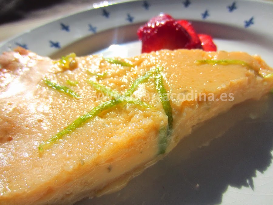 Retire y deje enfriar en la nevera. Decore con las tiras de lima.