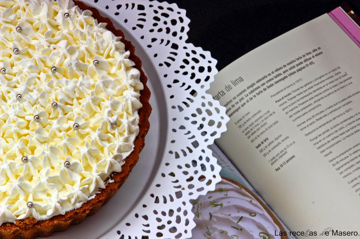 Esta tarta fue la elegida por Ismael para su cumpleaños. El único requisito que le puse para su elección fue que no fuera muy laboriosa, más que nada por mi estado...así que se decantó por la tarta de lima del libro "Las recetas de la pastelería Hummingbird" y le encantó. Ojeando por la red ví en el blog de "como he puesto la cocina" que había hecho la misma tarta adaptando las cantidades a un molde de 20 cm, así que seguí su receta.
