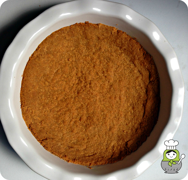 En primer lugar, hay que preparar la base de galleta. Comenzamos triturando en el vaso de la batidora las galletas hasta reducirlas completamente a polvo y a continuación les añadimos la mantequilla derretida. Removemos todo con una cuchara hasta obtener una especie de arena gruesa. Colocamos la mezcla de galleta en la base de un molde apto para horno de unos 22 cm. de diámetro y aplastamos bien con la palma de la mano o el reverso de la cuchara hasta que quede lisita y más o menos nivelada. La pasta de galleta debe cubrir también ligeramente el borde lateral. Horneamos la base durante 15 minutos a 170º y dejamos enfriar por completo.