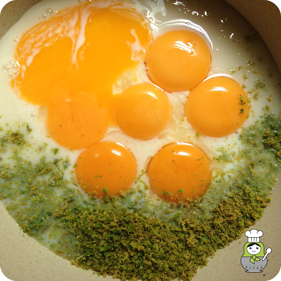 Mientras tanto nos ocuparemos de preparar la crema de lima. En un bol, colocamos la leche condensada junto con las yemas de huevo y el zumo y la ralladura de las limas.