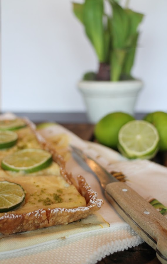 Así que al final, opté por esta tarta sencilla de pasta quebrada y especie de crema pastelera con sabor a lima.