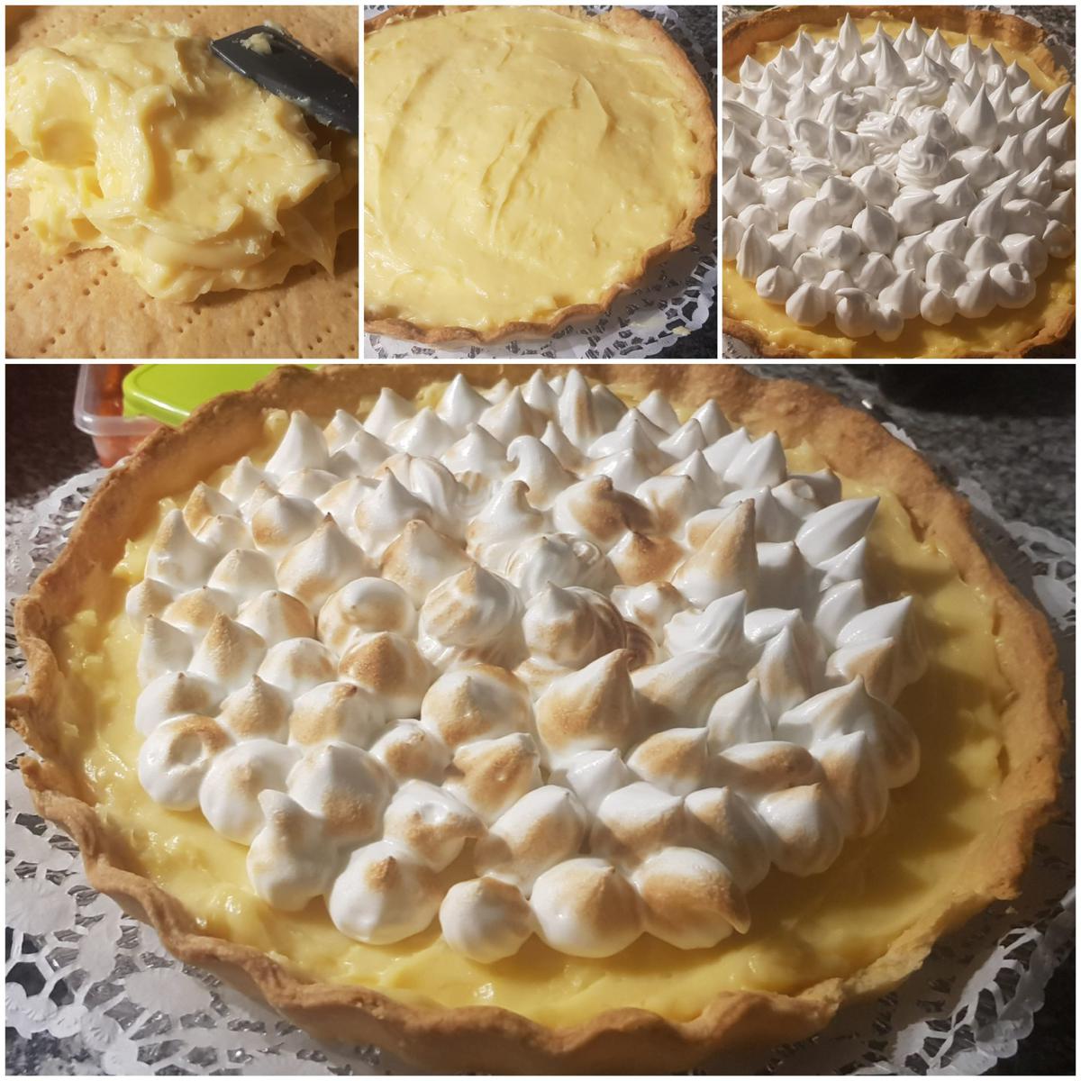 Montar la tarta Queda montar la tarta, encima de la masa, incorporar la crema de limón con la ayuda de una espátula, intentando dejar la misma cantidad de crema por toda la base, una vez hecho esto, poner el merengue, o también con una espátula o con una manga pastelera y una boquilla. Para quemar el merengue, si no tienes un soplete, puedes utilizar el modo gratinar del horno, unos 5 minutos. Si no tampoco pasa nada por que está igual de bonito y bueno.