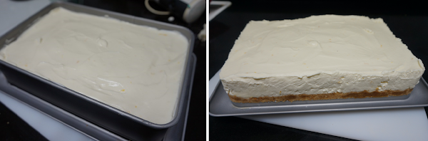 Cuando esté toda la crema en el molde, alisamos la base y metemos al frigorífico unas 4-5 horas o de un día para otro.