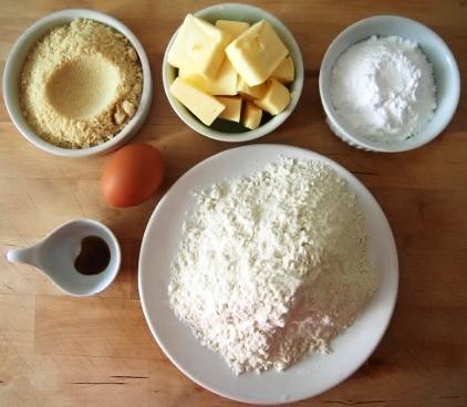 A continuación agregaremos la almendra en polvo y la vainilla. Mezclamos bien. Incorporamos la harina cernida y la trabajamos suavemente con los dedos, hasta obtener una masa granulosa.