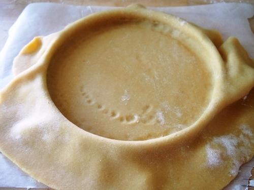 Delicadamente con los dedos bordearemos la masa en el molde.