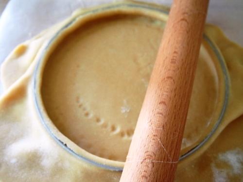 Pasaremos el uslero sobre el molde para así cortar el excedente de masa. Picar la masa con un tenedor para que no se infle en el horno.