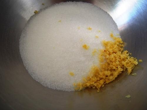 Mezclar el azúcar con la ralladura de limón, de esta manera fortaleceremos el aroma de limón en nuestra crema.