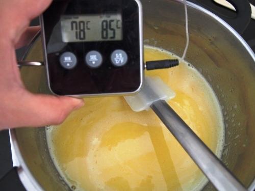 Incorporar los huevos , yema y el jugo de limón. Batir hasta lograr que el azúcar se disuelva completamente. Llevar a fuego suave y nunca dejar de revolver la preparación con una espátula. Retiraremos de fuego cuando alcancemos 82°c. De esta manera tendremos el espesor deseado.
