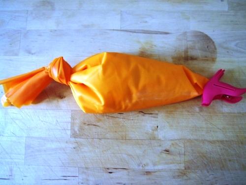 Verter la crema en la manga pastelera y refrigerar por lo menos 1 hora.